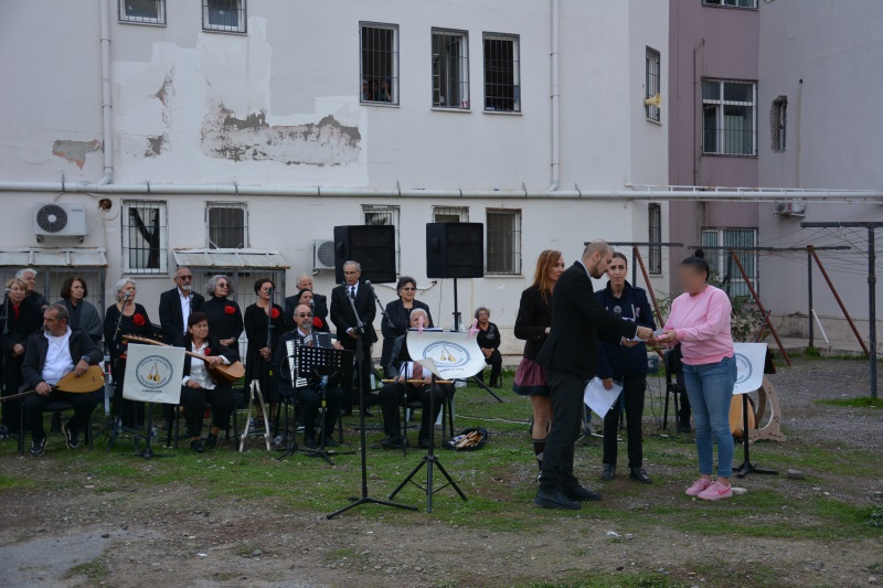 Ceza İnfaz Kurumumuzda kurum arka bahçesinde Ayvalık Küçükköy Halk Müziği Derneği tarafından konser verildi.Programa kurum müdürü Emine ÖZBEN, kurum 2.müdür Seyami TOPKAYA, kurum 2.müdür Mehmet ŞAHİN, İdare Memuru Beyza Nur KARTAL, kurum öğretmeni Müşerref ŞENER, Mustafa Kemal ÖZBAŞLI, kurum personelleri ve hükümlüler katıldı.Konser başlamadan önce kurum müdürümüz Emine ÖZBEN, 2.müdür Seyami TOPKAYA, kurum 2.müdür Mehmet ŞAHİN, İdare Memuru Beyza Nur KARTAL ve kurum öğretmeni Mustafa Kemal ÖZBAŞLI tarafından hükümlülere takdir belgesi verildi.Personel ve hükümlüler konser boyunca eğlenceli dakikalar yaşadı.