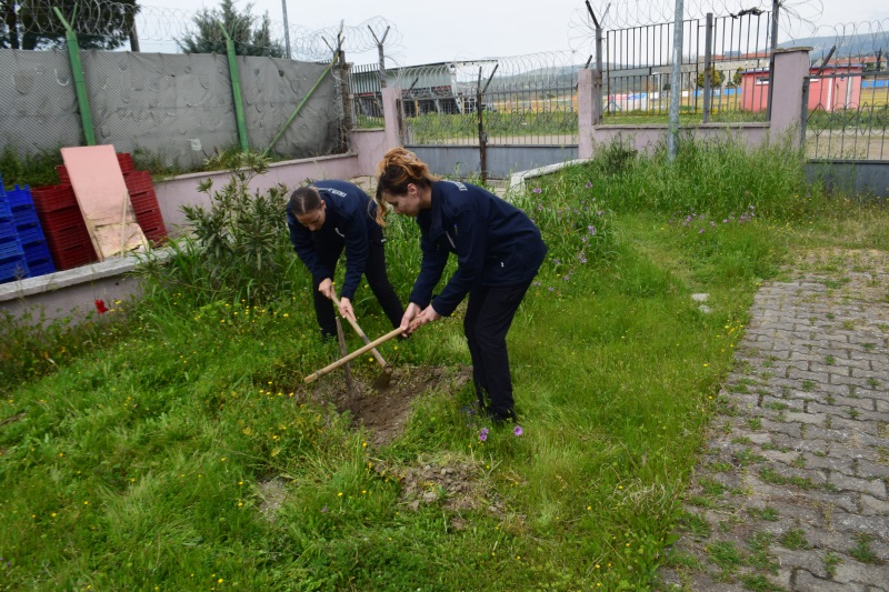 21 Mart-26 Mart Dünya Ormancılık Günü ve Orman Haftası kapsamında, geleceğin en değerli varlıkları olan ormanlarımızı korumak ve çevre bilincini güçlendirmek adına, kurum önbahçesinde Kurum 2.müdür Seyami Topkaya önderliğinde, personeller ve hükümlüler tarafından zeytin fidanlarına bakım çalışması yapıldı.